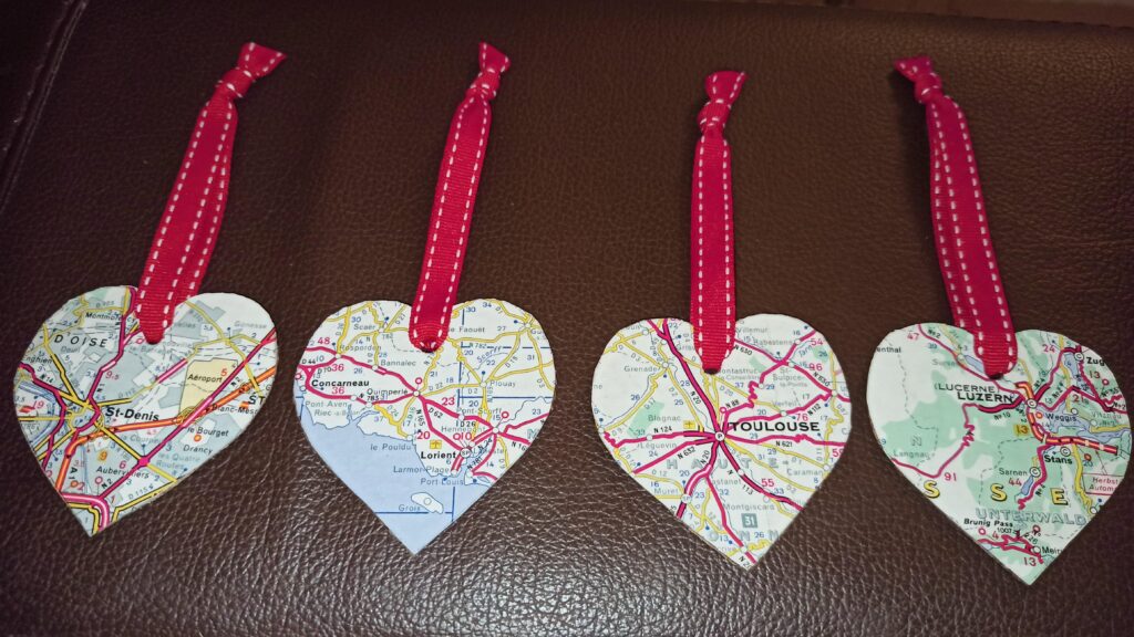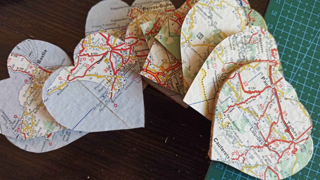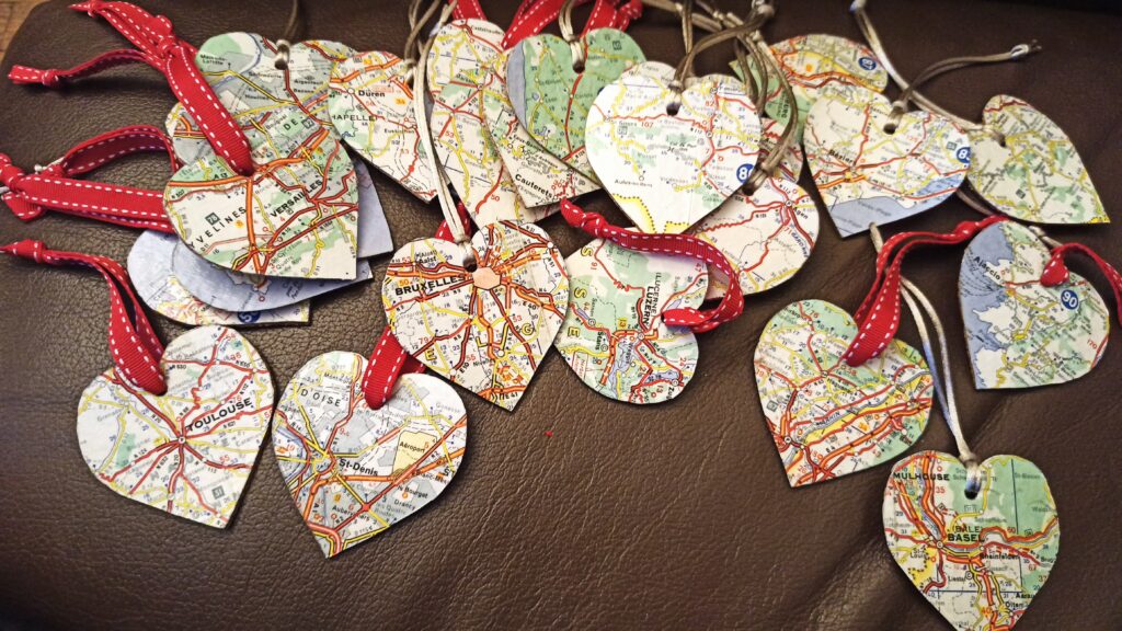 Pour cela, j’ai la solution. J’associe un plan… et… un cœur… Je découpe, je colle, j’y mets un petit ruban et voilà une petite décoration qui vous rappellera votre lieu préféré et l’endroit où vous avez rencontré votre âme sœur !